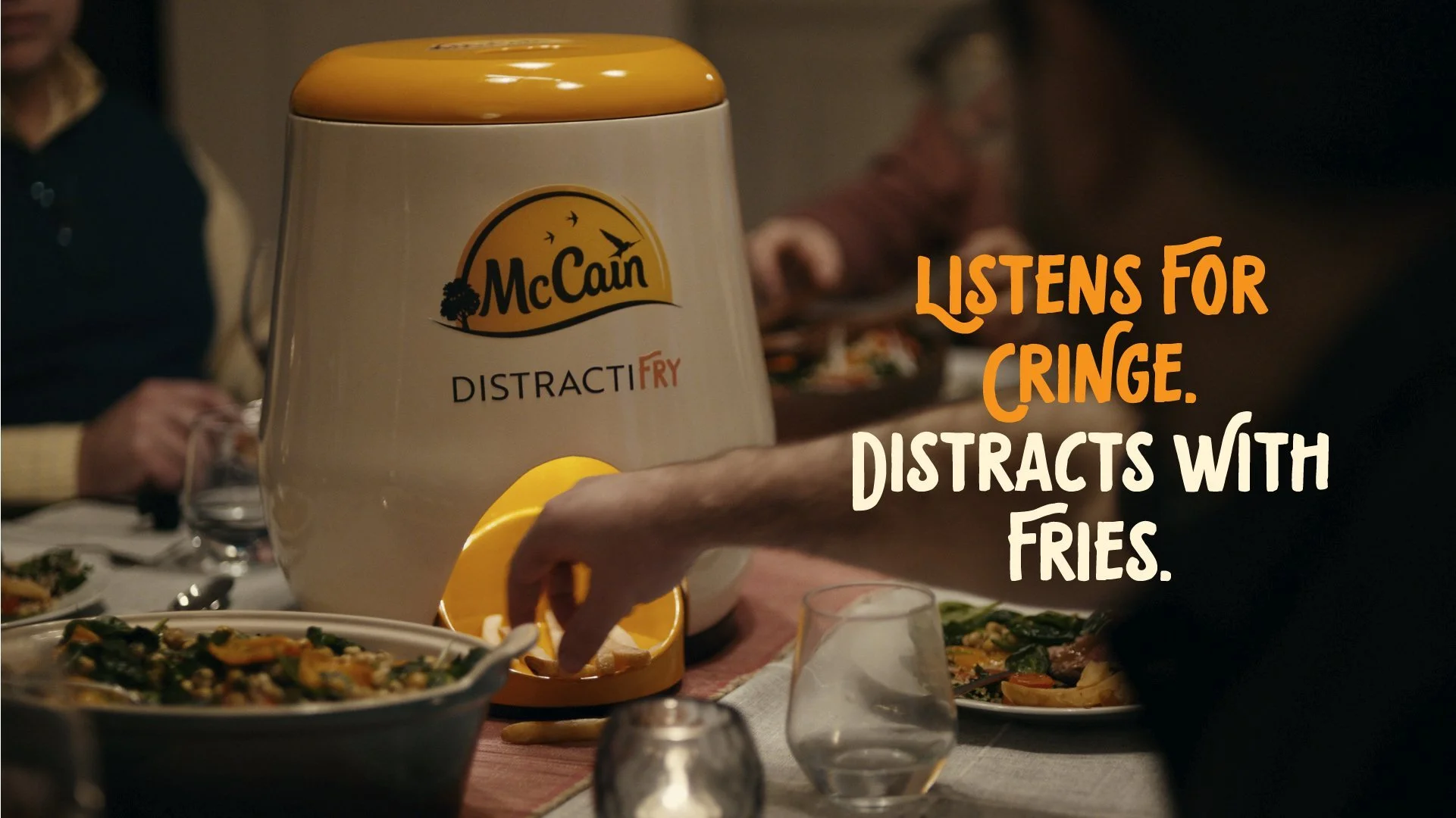Family gatherings can be a lot. And it’s pretty much a guarantee that uncomfortable questions and topics will get brought up. That’s why we made this very real, and very ridiculous piece of technology that dispenses fries whenever it recognizes cringy keywords.